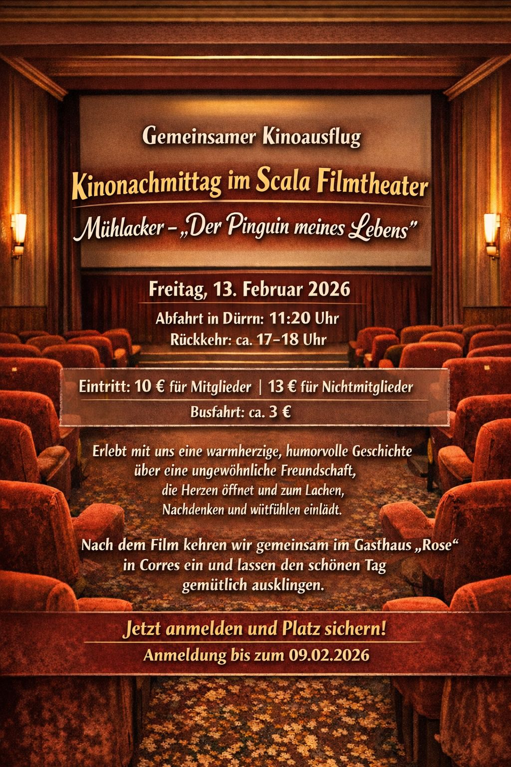 Am Freitag, den 13. Februar 2026 besuchen wir gemeinsam das Scala Filmtheater in Mühlacker.